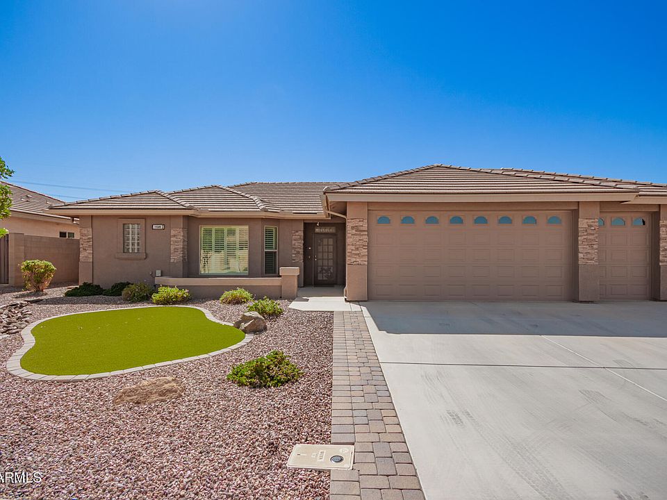 This gorgeous single-story home shows pride of ownership inside and out! The manicured landscape, desirable North/South exposure & 2.5-car garage are just the beginning. Step inside to see the split floor plan with all-tile flooring, plantation shutters & earthy colors. The impeccable kitchen boasts ample cabinetry, granite countertops & built-in essentials. The main bedroom promises a good night's sleep and showcases a lovely bay window, a walk-in closet & a bathroom with dual sinks. Get ready for weekend grills and cheerful evenings in the private, fenced backyard, complete with a cozy covered patio ideal for morning coffee. Amazing 55+ community with so much to do—visit the biking/walking paths, clubhouse, pickleball, tennis court, spa & workout facility! Don't miss out on this home!