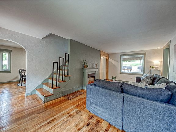 Welcome to this charming beautifully maintained move-in ready mid-century modern 3 Bedroom, 2.5 bath 2 story brick home located in the Municipality of Penn Hills. The main level features natural light filled office; dining room which flows into the well-appointed newly remodeled kitchen with quartz counter tops, Kucht Professional gas range and hood, dishwasher, Kucht drawer microwave, and a retro refrigerator; spacious living room; family room with a chalkboard paint wall, gas fireplace, and a powder room. The upper level consists of a primary bedroom with renovated full bath, 2 additional bedrooms, and a second full bathroom. Step outside to enjoy the screened patio, or unwind outdoors with your own private oasis on the expansive custom stone patio with fire pit, wrap around stone seating, and a large custom deck. The lower level has plenty of storage space, laundry area, and 1 car integral garage. Newer double pane windows and hot water tank.