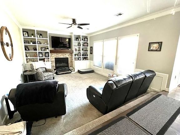 • Features: Carpet, Ceiling Fan(s), Fireplace