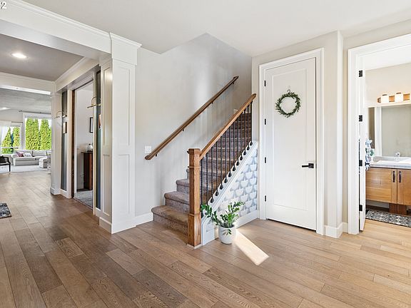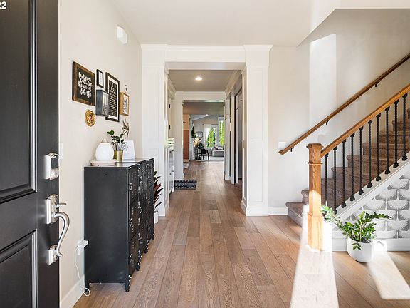Stunning traditional StoneBridge Model Home on large corner lot. 4 bdrms + bonus rm + formal dining/flex space on main. Open concept w/double sided see through fireplace. Gourmet kitchen with 10 ft island, quartz counters, subway backsplash, SS gas appls & large pantry. Primary suite w/spa-like soaker, tiled glass shower, his & her walk-in closets. 3 car garage, ample storage w/ dedicated HOV car charger. Fenced backyard w/private covered patio & hot tub, perfect for year round entertaining!