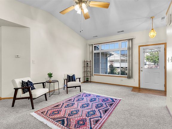 Welcome to Oakmont Villas! This is a well-maintained unit with an open floor plan and vaulted ceilings. Enjoy the zero entry at both the front door and the garage entrances. You will love the open concept living, dining and kitchen areas in this home. In the kitchen there are updated appliances and hard surface counters. The freshly painted master is very spacious and has a large walk-in closet. From the master, you also have access to a private patio. In the master bath you will find dual sinks, a walk-in shower and ample storage. The second bedroom in this home also has access to the private patio making it a bright space to work or relax. This unit has wide hallways and doors making getting around this home a breeze. Enjoy the patio in the summer and the gas fireplace in the winter. This unit has it all. Schedule your showing today!