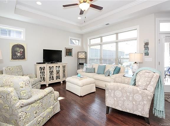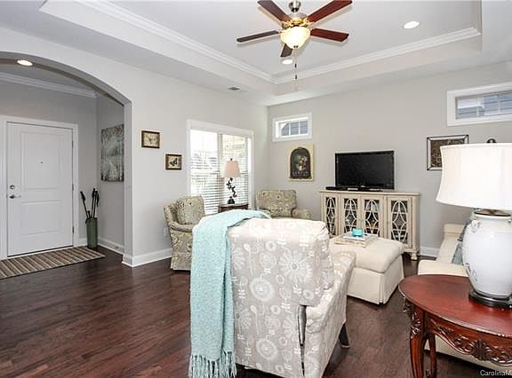 Imagine living in this beautiful low maintenance home in the highly desirable Courtyards at Emerald Lake. Your exterior and lawn maintenance are taken care of by your HOA. With single level living at its best, this recently completed 55+ community is convenient to I-485, shopping and restaurants. The open floor plan has rich dark hardwoods, an expansive kitchen island and a 5 burner gas range. The master bedroom features a tray ceiling and a very generous walk in closet. The master bath has a zero entry shower. Enjoy entertaining in your private garden courtyard seen from almost every room in this light filled home. This modern community has a large clubhouse with an outdoor fireplace, pool, fitness center, and scenic walking paths. Check out the digital brochure below.
