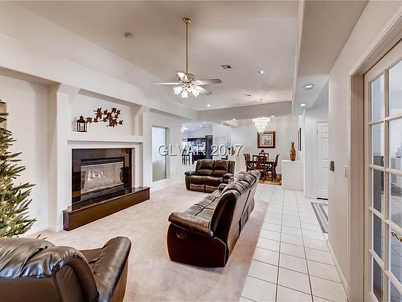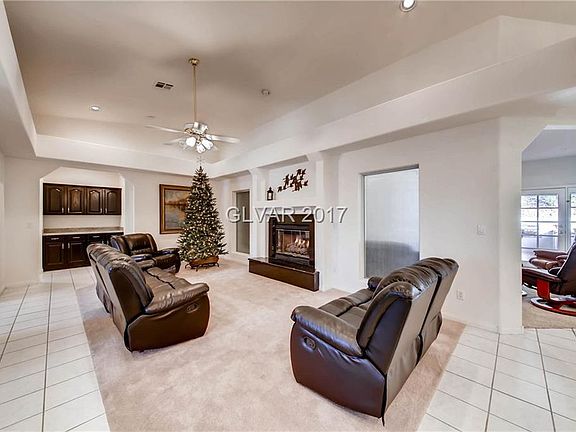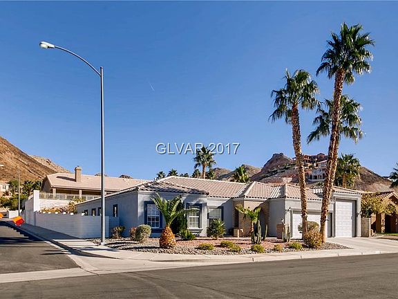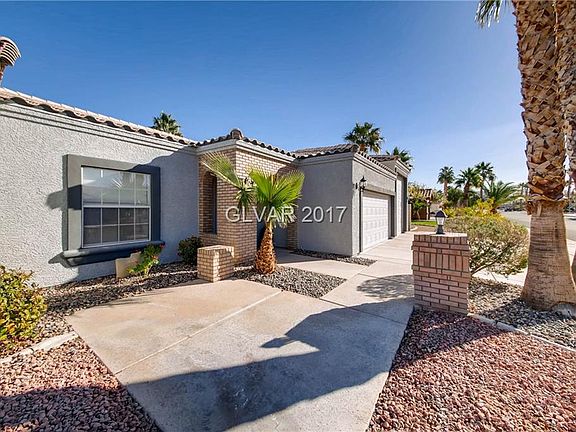 Custom Single Story on oversized corner lot with oversized/RV garage for all the toys. Open floor plan perfect for entertaining. Front patio has partial strip view. Large Master bedroom with retreat, fireplace, and 2 walk in closets. Both secondary bedrooms have walk in closets. Nicely landscaped with very low maintenance, fruit trees, Spa and waterfall, covered patio with built in BBQ and stove.