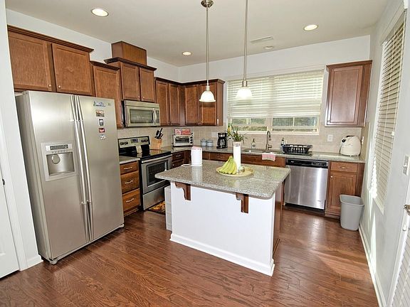 Open floor plan with 9’ ceilings, Hardwoods throughout main level and one car garage. Kitchen features granite counter tops, tile back splash and stainless steel appliances. Center isle with seating area and large pantry. Screened porch. Private backyard with easy access to greenway. Washer/Dryer and Refrigerator convey. Great location, minutes from restaurants and shopping.