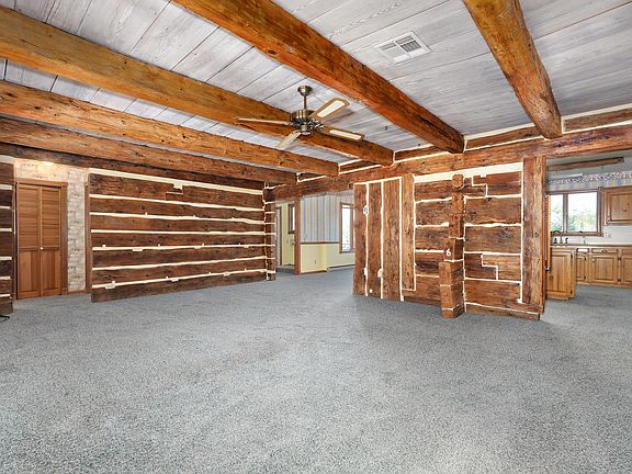 Country living with city convenience!! Check out this 4 bed room 2 bath home on 35 acres, with large sunroom and back deck that allows you to enjoy the breath taking views year round in all weather conditions. This beautiful custom built home was designed using the old logs from the original home stead that was on this property. These logs have been dated at nearly 200 years old. The log theme starts at the covered front porch and flows through out most of the home and gives it that amazing country vibe. Then you have that old red barn that just finishes it off. The 2 car detached carport has concrete floors and a nice work shop or art studio space. You will see a lot of deer and wild life and this property is perfect for horses or live stock. The house is outside city limits, but the 1.25 acres on the north east corner is in the city limits. It is very hard to find 35 acres this secluded in yet so close to town. Please do not drive up to house with out an appointment. Don't miss out, schedule your showing today.