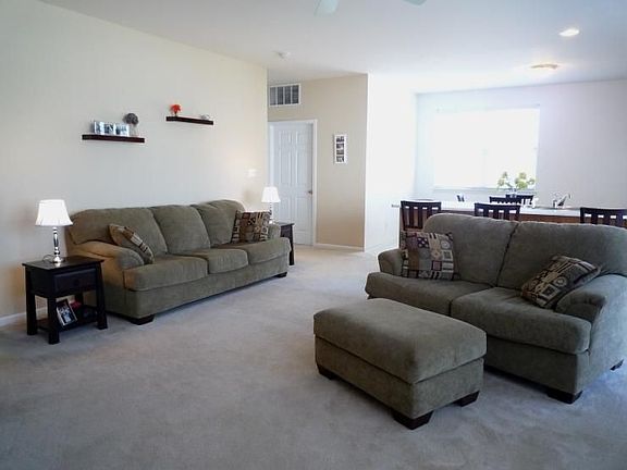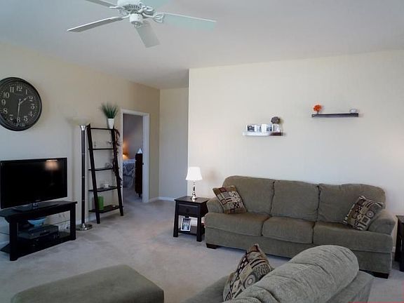 Welcome to the maintenance free living! This spacious, open concept ranch style condo has the advantage of being on the main level with a quiet cul de sac setting. The large carpeted Great Room offers a sliding door to the patio and is open to the spacious, full equipped, eat-in Kitchen which features a breakfast bar, an abundance of cabinets, under cabinet lighting and includes all appliances. Master suite has a private 3/4 bath equipped with heat lamps and 2 closets - one a large walk-in! The second bedroom can be a guest room or office. The convenient in unit laundry room includes washer and dryer. There is a one car private garage with room for additional storage, a club house, in ground pool, fitness center and walking paths, all available for you to enjoy. Great location with shopping, movie theater, and restaurants just steps away!