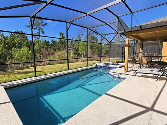 Five bedroom, 4.5 bath detached home located in a small gated community only minutes from Champions Gate. This home has a screened heated pool/spa which is south facing and also overlooks a conservation area so plenty of privacy. This home is being sold fully furnished, there are also two master bedrooms and a bonus room on the second floor, there are tiles in the living areas and granite worktops. Disney is only 15 minutes away and shops and a supermarket only 3 minutes way, for golfers there is a good choice of top rated courses within 10 minutes.
