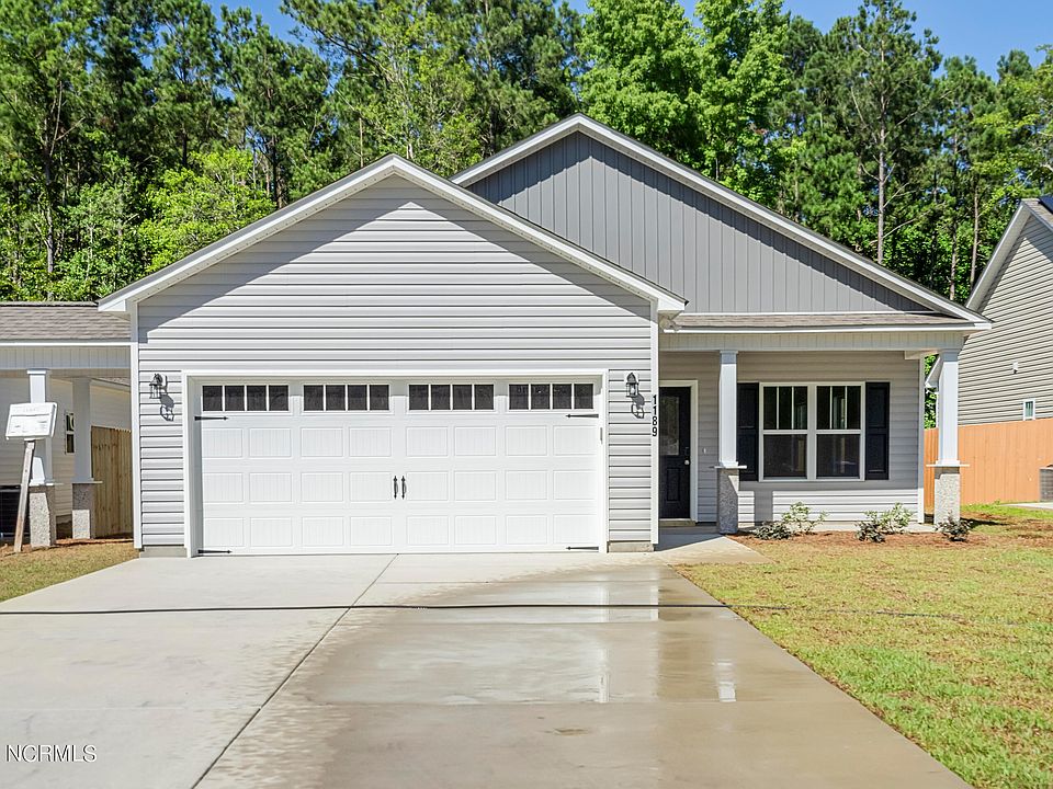 Welcome to your dream home in Hampstead! This brand-new 3-bedroom, 2-bathroom gem is centrally located and has all the perks you need, ready to move in June of 2024 AND there's $3500 in closing cost assistance to help you seize the keys! Inside, the open living area is super inviting with its stylish LVP flooring and 9-foot ceilings. The kitchen is a stunner with white cabinets, granite counters, and stainless appliances. And guess what? You can sync your favorite playlist to the Bluetooth pendant lights over the bar for some serious ambiance. The master suite is your oasis with a huge walk-in closet and a bathroom that boasts double vanity sinks, elegant marble counters, and a walk in tile shower. There are some nifty tech features like a programmable Wi-Fi thermostat, LED light fixtures, USB outlets, a Wi-Fi deadbolt, and garage keypad entry. It's in a private, friendly neighborhood with an HOA that keeps things coastal, so you can park your boats and RVs right in your driveway. No fuss, no hassle. Out back, relax on the screened porch, and you can fence in the yard with HOA approval after closing. This home is low maintenance, so you can enjoy more of the salt life as a second home if you choose. And when it's time to hit the town or the beach, you've got easy access to Wilmington, Camp Lejeune, and the Topsail Beaches. The builder has a comprehensive one year warranty, and if you put this under contract soon AND you could have a chance to pick paint and flooring colors! Don't wait, call today for all the details and seize the keys in 2024!