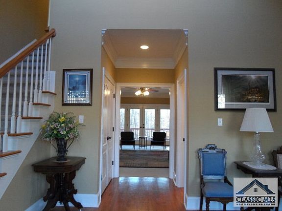 This awesome all brick cape cod in the North Oconee school district has everything on your wish list! Granite kitchen, master on main, wood floors, full finished basement, additional garage in basement, 3 beds with 2 baths up, super condition, three sets French doors to large back deck, gigantic laundry, workshop, craft room, wrap around rocking chair front porch, really cool breakfast room with night lighting, additional dining room, breakfast bar, fireplace, full bedroom, bath and huge family room terrace level with French doors to fenced backyard, very easy to show and see...it's warm colors and clean lines are a welcoming addition to this spring market. I have many more wonderful photos but the system is only allowing these 10 right now, will try again to add them later today.