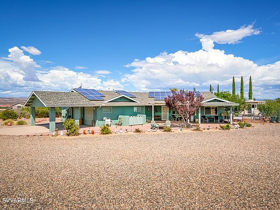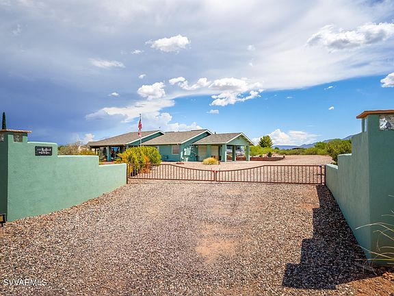 Do not miss this beautiful home situated in the heart of Cottonwood on a large 1.75 acre parcel with incredible views of Mingus Mountain and the Sedona red rocks. When you enter through the private gated driveway at the end of Date St, you will be in awe with the amazing views, immaculate low maintenance landscaping on automatic drip system. No through traffic, quiet neighborhood. Massive 1,200 sqft metal shop/barn RV garage. Beautiful custom outdoor BBQ and firepit. Lush garden area with fruit trees and raised beds. The home is methodically laid out with a split floor plan, 3 zone central air, huge master suite, 3 bedrooms + office that could be used as a bedroom. I love how quiet and private this place is! Serenity awaits... No HOA. Horse property and plenty of room for all your toys! Home has a brand new roof, installed January, 2023