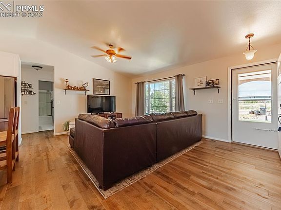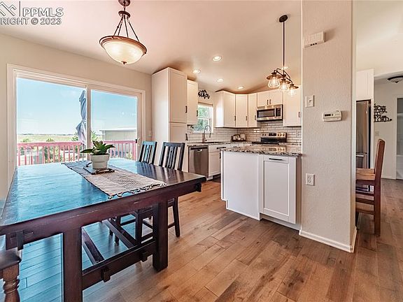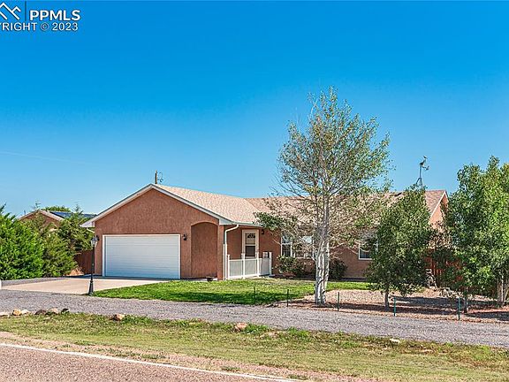 Come check out this peaceful oasis in Pueblo West! Completely renovated inside including remodeled kitchen with new shaker cabinets, beautiful granite island, and new stainless steel appliances. Bathrooms updated with modern tile flooring, new vanities and updated shower doors. New real wood flooring throughout main living spaces and new carpet in bedrooms. Tons of bonus space in the finished walkout basement with so many possibilities, including space for a fourth bedroom with an adjoining updated full bath. The nearly 1,000 square foot shop with electric and concrete floor adds so many possibilities. All of this is situated on 2.5 acres, paved road in front of the house, and green belt with a trail behind so your backyard views will never be obstructed. Sit on the deck to enjoy your park-like backyard, including a cherry tree and an enclosed space for chickens.
