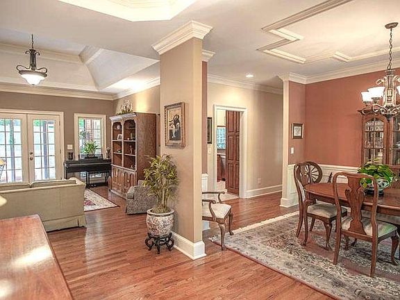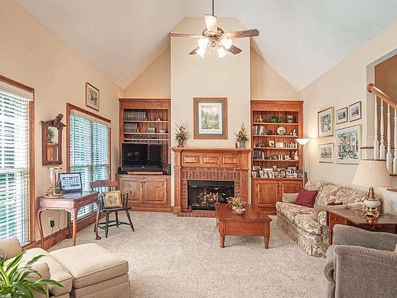 - InteriorFeatures: Double Vanity, Walk-In Closet(s), Vaulted Ceiling(s), High Ceilings, Gas Logs, Separate Shower, Garden Tub, Bookcases, Cable TV Connections, Entrance Foyer, Hardwood Floors, Tile Bath, Tile Floors, Carpet, Tray Ceiling(s), Pulldown Attic Stairs