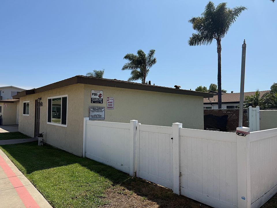This duplex is part of a small one story multi-unit complex. This 2 bed, 1 bath duplex unit does not share a wall with the next door neighbor. It includes a small yard, 1 car garage and W/D hookups. This home has fresh paint inside, newly remodeled bathroom, brand-new tank less water heater and new carpet in the bedrooms. This is close to schools, shops and beach.