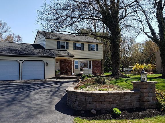 This beautifully maintained home in the Hunter Hill community located in Towamencin Township, Montgomery County is waiting for you! Already pre-inspected, this property is priced to sell! This lovely home is located on a no-through road, cul-de-sac street, on a .50+ acre lot offering amazing outdoor living space with a screened-in porch. The home features a covered, double-door entry into a welcoming foyer that opens into the bright, freshly painted living room filled with tons of natural light. A family room offers additional living space with a brick enclosed fireplace and built-in wood burning stove. The expanded, open concept kitchen offers beautifully crafted custom cabinetry and pantry, granite countertops including a 9.5 x 3.5 foot island with built-in storage and wine rack, new stove/range and a farmhouse sink. The main floor also offers an updated powder room, laundry room with outdoor access and access to a two-car garage. The second floor offers a master bedroom with full bath and heated flooring, 3 additional spacious bedrooms and a full bath with double sink vanity. The unfinished basement has been waterproofed and can be used as additional storage space or can be finished and used as additional living space. The home also offers 3 zone heating, dual zone air conditioning, whole-house fan, 3 attic spaces — over garage (fold down), over screened porch and in second floor bedroom closet — surround sound wiring, pressure flush toilets, life-time roof warranty and a primary and back-up sump pump.