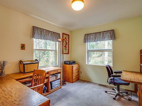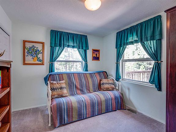 Come and see this lovely 4 bedroom, 2 bath mountain home. This property has two separate living areas and loads of natural light. The galley style kitchen features wood cabinets, a french door that opens to one of the three decks and a coffee bar. The large laundry room has counter space and cabinetry to meet your laundry needs. The dining area is light and bright and is located off of the kitchen and opens to a large living area. This living area includes a wood burning stove for winter nights, built in shelving and opens to a large back deck with views of pine and aspen trees. The large front deck is set out over the two car garage.