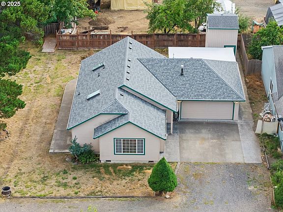 Charming Single-Level Home with RV Parking & Spacious Backyard!Welcome to this delightful one-story home that offers comfort, functionality, and room to grow—perfectly set up for everyday living and entertaining. You'll be impressed from the moment you arrive with the wide driveway, extra parking space, brand new roof, and inviting covered front porch. Step inside to a bright entryway featuring laminate flooring and a convenient coat closet. The vaulted living room is warm and welcoming, with a cozy fireplace, large picture windows, and ample space for a sectional sofa and big-screen TV. The adjoining dining area includes a ceiling fan and a sliding glass door that leads to the back patio—an ideal space for weekend barbecues and gatherings. The vaulted kitchen is designed for ease and efficiency, complete with a pantry, generous counter space, a window over the sink, and the refrigerator is included! Down the hall, you'll find the spacious primary suite with a skylight, walk-in closet, and a full en suite bath with step-in shower. Two additional bedrooms offer good closet space and flexibility for family, guests, or a home office. The laundry area includes a handy storage shelf—perfect for keeping things organized. Step outside to your amazing backyard oasis! Enjoy the oversized covered patio, a large walk-in storage shed, and a spacious grassy area—great for kids, pets, gardening, or even a firepit. There's plenty of space for raised garden beds and outdoor fun. Located in a charming small town, you’ll love the walkability to local restaurants, parks, boutiques, and churches. Enjoy annual events like the Fourth of July Parade, local fireworks, and the beloved Salmon Festival. This home truly has it all—comfort, community, and space to thrive. Come see it today!