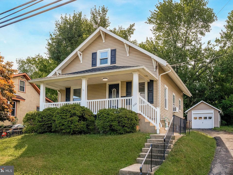 Welcome to your new home in the highly acclaimed Abington School District! This detached, cute-as-a-button bungalow is a perfect blend of charm and modern convenience. Featuring 2/3 bedrooms, 2 full baths, and a versatile den that can be used as a home office, playroom or third bedroom, this home offers ample space for your needs. The kitchen boasts granite countertops, brand new stainless steel appliances, recessed lighting, and luxury vinyl floors, neutral white cabinets, creating a perfect space for culinary enthusiasts. The living room, dining room, main floor bedroom, and den showcase beautifully refinished solid oak floors, adding warmth and character to the home. The main floor bathroom features elegant gray tile floors and surrounds, complemented by a smart mirror. Upstairs, the expansive primary bedroom awaits with brand new carpet, a large walk-in closet, and a luxurious ensuite bath complete with a spacious walk-in shower and a smart mirror. Updated lighting and fresh paint throughout the home enhance its welcoming ambiance. Enjoy the benefits of double-hung, double-pane vinyl windows, ensuring energy efficiency and comfort. The front porch, with Trex decking and vinyl railings, invites you to relax and unwind. The shared driveway leads to a detached one-car garage and a fenced-in rear yard, providing privacy and convenience. The spacious unfinished basement includes a laundry area and plenty of storage space. Located within walking distance to the Roslyn train station, Giant, Starbucks, and close to numerous restaurants, shopping options, and the Briar Bush Nature Preserve, this home offers both tranquility and accessibility. Don't miss out on the opportunity to make this charming bungalow your own!