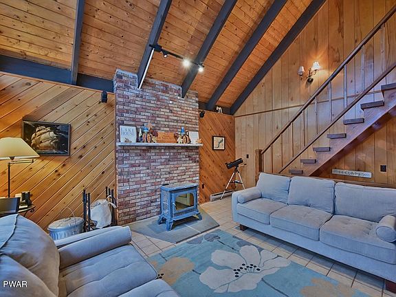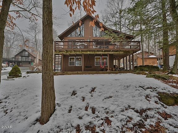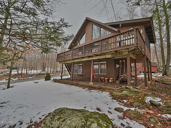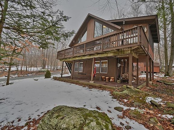 The perfect Pocono getaway. Move in ready 3 bedrooms 2.5 baths chalet with pine t&g ceilings, open floor plan, lots of family space, beautiful fireplace, four season/Florida room and a private master suite! Finished basement, 1 car garage and shed. Partial lakeview of Deer Lake and a 2 minute walk to the lake!! Being sold furnished as is!
