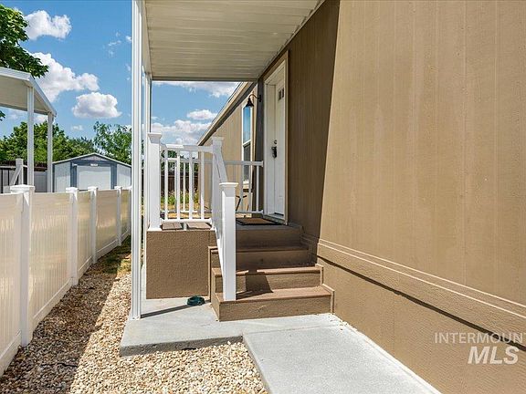 Amazing opportunity to invest in a place of your own in West Boise close to shopping, freeway, medical facilities & more. This is a 2022 mobile home with a ton of extras! A/C, Vinyl flooring, blinds & window coverings throughout. Open concept and split bedroom plan. Extra parking with concrete pad, shed for storage, covered patio front & back, private yard with great space. Minimal yard maintenance which is a bonus. Included are the refrigerator, washer, and dryer! There is also a community pool! The community park even offers storage for RV, boat, or trailer. Schedule your private tour today!