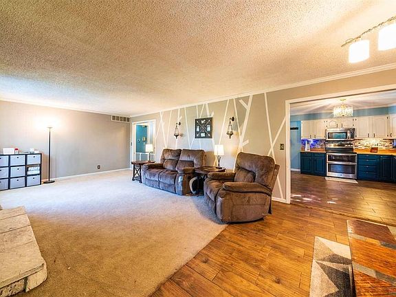 Large ranch style home located on a big corner lot minutes from Whiteman Air Force Base and a short drive to Warrensburg or Sedalia. This 4 bed 2 bath home has so much to offer and plenty of room for everyone. The main level has 3 bedrooms and 2 baths. Spacious kitchen with ample cabinet space and new beautiful tile floors in kitchen, breakfast area, dining area, hallway and entryway! Stainless steel double oven, microwave and dishwasher stay with the home! You will enjoy relaxing in the large living room that includes a wood burning fireplace! Let's head downstairs where the 4th bedroom is located along with an office or non conforming 5th bedroom and family/rec room. New egress window has been installed in the lower level as well which allows natural sunlight in. Schedule your showing today! - Welcome Home!