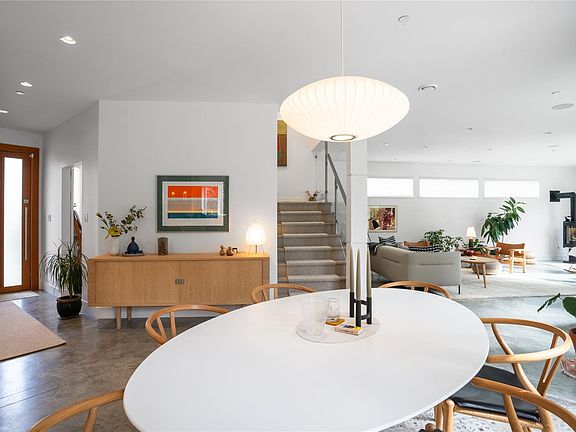 This multiple CARE award winning home is privately situated at the end of a quiet cul-de-sac, surrounded by nature & backs onto protected parkland. Built by Bowsey Construction, this contemporary home offers 5BEDS & 3BATHS drenched in thoughtful design detail from the moment you enter the front door – vaulted ceilings, new Jotul modern gas fireplace & heated, polished concrete floors throughout the main floor! Open-concept kitchen & dining room feature Wolf gas cooktop w/unique hoodfan over the island, new Bosch fridge, lots of cabinetry to the ceiling, & space to host many in the spacious dining area –opening up to the rear yard w/forestry wrapping the rear exterior, where you can soak in the hot tub or relax on the outdoor seating & dining areas. Primary suite has a private balcony, walk-thru closet & spa like ensuite w/double vanity, rainfall shower & soaker tub, where you can relax, unwind & take in all of the peaceful views. Come enjoy the resort lifestyle that is Bear Mountain!