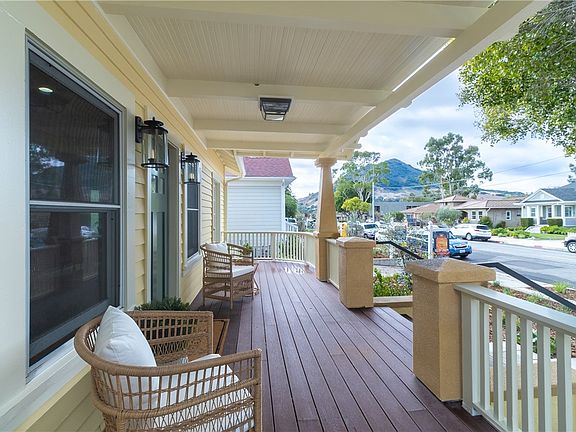 Welcome to the Peach Preserves, an updated historic neighborhood in the epicenter of SLO. This home greets you with a delicious curved front porch spanning the entire width of the home to enjoy views of Bishops peak and Cerro San Luis. The spacious open floor plan leads to the kitchen with high end Thermador appliances and a tiled backsplash to the ceiling. Past the Samsung washer/dryer tower is the generous backyard for a downtown property which is encompassed by a custom redwood pergola that filters the sunlight and everything else so you can relax on the cool natural stone patio in peace and harmony. 4 off street parking spaces on the east side of the house allow you to access the front porch and the back yard with ease.