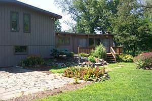 UNIQUE CONTEMPORARY... $219,900 Stone & sided rustic contemporary design. Multi level home. Great Room w/massive stone fireplace. Lots of natural light. Wall of glass overlooking picturesque & private 2.10 acre homesite, bordering creek. Exposed beams, skylights, lots of natural wood. Finished lower level w/firplace/woodstove & expandable 5th BR.