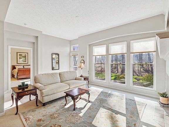 Bright, open & spacious Ranch Condo. This pristine home features 42'' kitchen cabinets, hardwood floors, tall ceilings, gas fireplace w/ beautiful built-ins, central vac & 2 car gar. Primary Bedroom is a welcome retreat w/ large en-suite including a double vanity & walk-in closet. Enjoy the rear patio with wooded view. HVAC 2019. HOA includes: community pool, exercise room, clubhouse, exterior landscaping/maintenance, water/sewer & trash