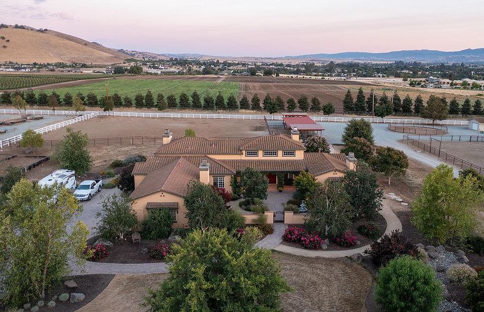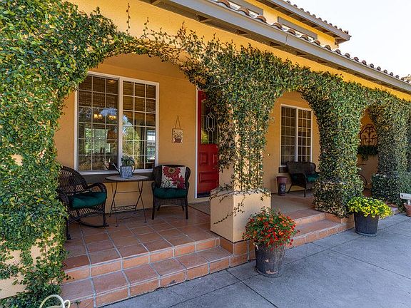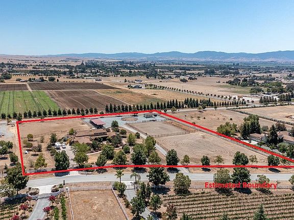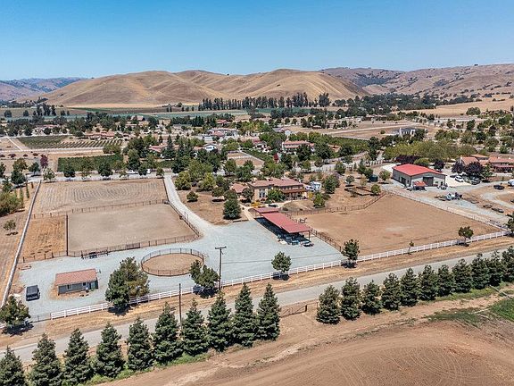 1151 Stony Brook Dr in Hollister, CA is a Tuscan style single story home with 4 bedrooms and 2.5 bathrooms and 3 car garage with a workshop on 4.68 acres. Remodeled gourmet kitchen with granite counters, large island with sink. New appliances including Wolf range. Two separate living spaces, dining area, and eat in kitchen areas. High ceilings - lots of natural light. Custom built cabinetry throughout home. Owner suite has large walk in closet with built ins, walk in shower, jacuzzi tub, double vanity and makeup area. Bedrooms have hardwood floor, new lighting fixtures, and ceiling fans. Dual zone AC and laundry room. Fully fenced 5' non climb fencing with custom entry and courtyard gates. Horse amenities: custom built covered pull barn with 4 large horse stalls, wash rack with hot and cold running water, and hay/feed coverage. Two large pastures and round pen with custom pipe fencing. Pastures and arena have hook ups for water. Community well with cross connect. Septic tank. No HOA