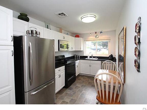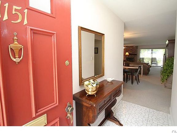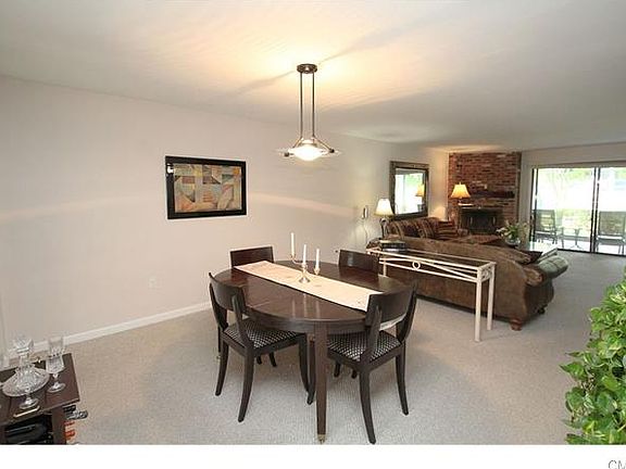 Enjoy the ease of one level living in this beautiful first floor ranch unit. This unit is totally immaculate and has a nicely updated white eat in kitchen and 2 remodeled full baths. Dining area opens to living room with fireplace and sliders to private patio overlooking footbridge and waterfall. 2 spacious bedrooms including a master suite, plenty of big closets, gas heat and newer laundry. Heated community pool within the complex. Great commuter location!