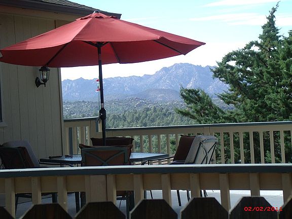 Open floor plan home on a quarter acre in beautiful Haisley Homestead . All custom homes, no cookie cutters here. Live with nature in the pines within walking distance to shopping and historic Whiskey Row. This jewel has three big decks with INCREDIBLE mountain and city views and a private patio with a view of the woods. Two huge master suites with double sinks in each of the bathrooms and two walk-in closets in each. Two gas fireplaces. Kitchen has granite countertops and maple shaker cabinets. Main living area has porcelain tile floors. Each suite is carpeted. A two car attached garage offers additional storage for all of your gear or tools. There is a large fenced back yard for your pets to explore with area for gardening. Gas and electric heat. Community pool and tennis courts. And did I mentions THE VIEWS?! This won't last long.