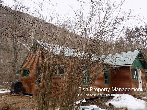 SCHEDULE A SHOWING ONLINE AT: showmojo.com/lh/71b6ef80e6 OPEN HOUSE- limited tours will be available for this very special property. Come to our open house on Monday, May 25, 1pm-2pm. Be the first to live in this newly renovated cabin right on Pine Creek. If you like fishing, boating, swimming or just listening to and watching the creek, you will LOVE this property! The cabin is 3 bedrooms, 1.5 bathrooms, enclosed back porch and stunning great room with kitchen, dining area and living room. We are going to be finished with the renovations shortly but are able to schedule a move in for May 15. The house has just gotten all new plumbing, ceilings, roof, electrical, attic insulation, kitchen, baths and flooring. The fireplace has a liner in the chimney so open fires aren't possible, but if you have an insert or stove you would like to use you can do that. Oil hot air furnace. New stove and refrigerator included. It doesn't get better than this! The outdoor areas are ready to enjoy featuring a detached one car garage, shed, concrete picnic table and brick fireplace. The river is accessible down a gently sloping bank and the property gets lots of shade from the trees surrounding it. Located in a private community on 44 N 3 miles from 220. 12 months