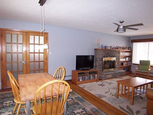 Complete info: http://1151williamstreet.CheckOutMore.com - Delightful early 1960s modern-style ranch in the Borough near campus and downtown. Discover the value... updated IKEA kitchen with attractive wood cabinets, stainless steel appliances, handsome fixtures and easy access to an outdoor deck area overlooking the back yard. The dining/living room area is graced with a lovely stone wood-burning fireplace, built-in shelves, hardwood floors and expansive windows bringing in abundant natural light. You'll notice the main floor bath is light/bright, contemporary and outfitted with a dual sink vanity. The three bedrooms on the main floor are stylishly painted and boast hardwood floors. Room for everyone... the walk-out lower level offers a nice family room/office area, a full bath, and plenty of storage options. Green thumb? Enjoy the raised beds for fresh summer produce from your own garden. There's a lot to love.