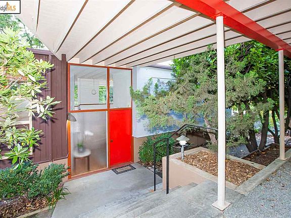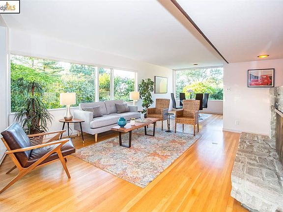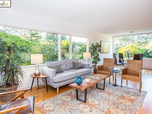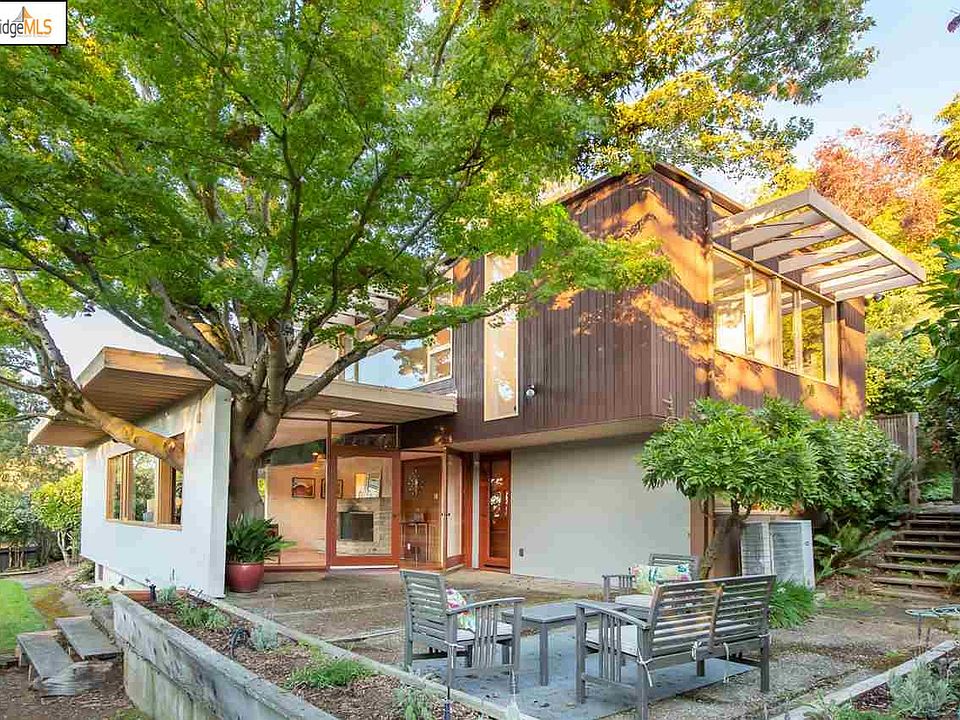 SENSATIONAL MID-CENTURY HOME IN A MAGICAL SETTING! Surrounded by lush, natural greenery in every direction, this Henry Hill masterpiece designed in 1951 emphasizes light, shadow and textures. The entryway directs you down to the dramatic open floor plan living room/dining room featuring a stone fireplace and hearth. Glassed in on three sides, the space looks out onto mature camellias, magnolias and a sixty-year-old Japanese maple tree that appears to grow up through the house. A bifurcated stairway leads you up to separate wings that are connected by a window lined walkway overlooking the striking foyer below. On one side there's a sunny lounge, two bedrooms and a bathroom. On the other is a spacious bedroom suite with a private bathroom, a walk-in closet and a dressing area. The house is situated on an almost half-acre lot with room and plans for an adjunct dwelling unit. Sweeping canyon views beautifully juxtapose the rural environment with this amazing contemporary dwelling.