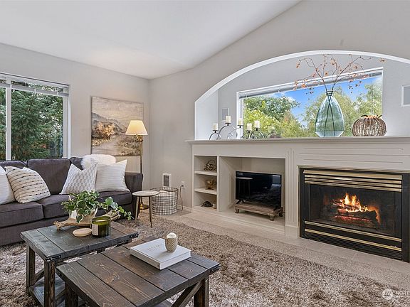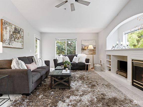 Beautifully updated, top floor, end unit with a garage & TWO primary bedrooms! Greenbelts all around. Vaulted ceiling + extra windows create a light and airy feeling throughout this spacious home. Super clean w/new carpet and wall paint, LVP flooring, new LED lights, mostly new blinds. Kitchen boasts quartz countertops, newer appliances and brand-new dishwasher. Large front primary bedroom has a huge double closet and full bath with door to hallway. Primary bedroom #2 opens to the deck and has a walk-in closet and step-in shower. BBQ on the deck and enjoy sounds of the creek in the greenbelt. Garage has extra storage shelf. Excellent location, easy to Boeing, easy to I-5, 99, 405. Trader Joes, Costco, Everett Mall close by. Pet-friendly HOA