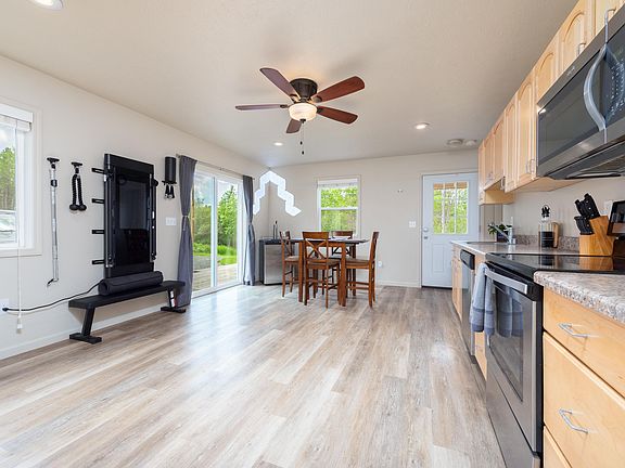 Looking to escape the City? Check out this 2-bed 2 bath Oasis! Home features main floor utilities, LVP flooring, stainless steel appliances, a wrap-around deck, and both bedrooms have an en suite bathroom. You will find some of the best features on the 2 acres of property including a 30x30 shop with power, a lean-to barn with hot wire fencing, a fenced garden area, a custom chicken coop and run, and a shooting range, multiple fire pits, and a seasonal creek. Across the road, you will find a trail that leads to private forested parkland creating added privacy. This is a great property for someone looking for a country escape but still close to all the amenities of living in the City.