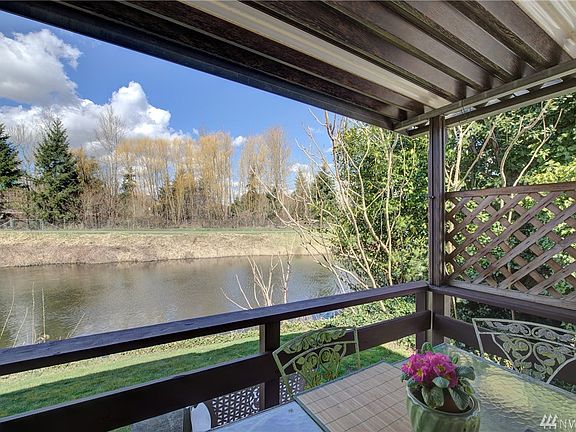 Quiet & peachful Sammamish River living. Beautiful views on the river across from Burke Gilman Trail. Cozy 2 bedroom home w/open living/dining room/kitchen area w/bay window & river view. Updated bathroom, new front door, freshly cleaned carpets. Covered deck w/view ideal for BBQ & outdoor dining. Small riverside yard for peaceful wildlife watching as seasons change. Great location & easy access to freeways & downtown Bothell/Woodinville. Large shed for storage & 2 off street parking spaces.