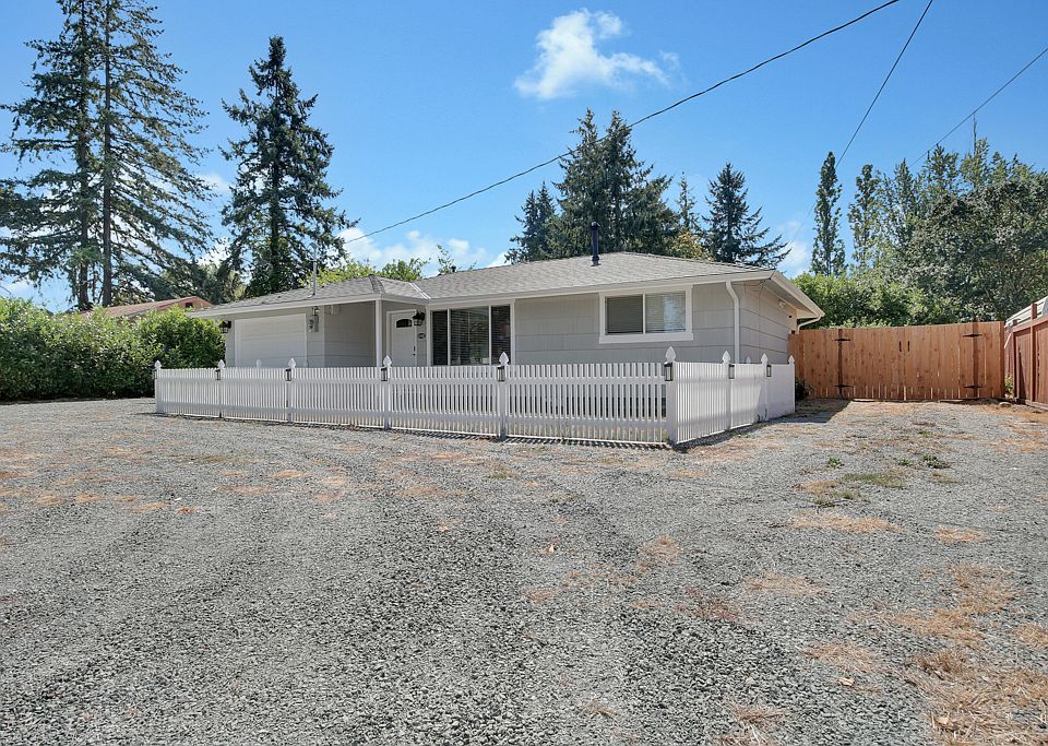 A circle driveway greets you to this fully remodeled 2bed, 1 full bath in Lakewood. Brand new: roof, electrical+panel, furnace/AC, water heater, floors+ lighting, quartz countertops, and SS appliances. Fully fenced-in HUGE backyard w/pear, apple, cherry+plum trees. Right side of the house has a double gate, (no HOA) so bring your boat/RV to park! A single car garage and lots extra parking! New gutters, all new windows w/blinds/sliding glass door w/built-in mini blinds. (This was NOT a flip).