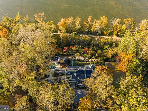 Welcome To 11510 Springridge Road, an extraordinary property offering unobstructed, year-round views of the Potomac River—an exceptional find in the Washington, DC area. This nature lover’s paradise is set on over three acres, adjacent on two sides to the bucolic C&O Canal National Historic Park, with 270-degree river frontage and creek access from which you can float your kayak under the canal and out to the Potomac. This remarkable setting provides a rare opportunity for breathtaking panoramas and a natural sanctuary complete with nesting bald eagles and blue herons for neighbors. The four-bedroom residence is gracefully perched atop a gentle knoll, where a circular drive with a water feature inspired by the river frames a broad lawn accented by stonework and mature plantings. From the front entry, the eye is immediately drawn to uninterrupted views of the river. Designed to capture its setting, all principal rooms face the Potomac through expansive floor to ceiling windows. The main level showcases a gourmet kitchen adjoining a gathering room featuring a fireplace and that opens to an extensive outdoor living area including an expansive patio featuring an inground pool and two pergolas. A spacious dining room with built-in glass-front cabinetry and a dual-sided fireplace connects seamlessly to the formal living room, where walls of glass share the warmth of the same hearth. The chef’s kitchen is equipped with double wall ovens, two dishwashers, a Sub-Zero refrigerator and freezer, a Gaggenau cooktop with built-in grill, two skylights, extensive cabinets and multiple pantries, and granite counters. This level also offers an en-suite bedroom, a handicap-accessible full bath, an additional bedroom with hall bath, and a mudroom/laundry with exterior entry and garage access. The upper level hosts two en-suite bedrooms, including the palatial primary suite. This remarkable retreat features a sitting room, a fireplace framed by custom built-ins, and an octagonal turret. It also offers two voluminous walk-in closets, an additional deep closet, recessed lighting, and both front and rear balconies. The spa-like primary bath includes a glass-enclosed shower, soaking tub, oversized vanity, and skylight, with a convenient storage room just beyond. Both bedrooms enjoy the rare luxury of waking up each morning to glorious water views, often accompanied by majestic eagle sightings. The outdoor spaces are equally impressive, with sweeping terraces and patios extending across the home—each capturing captivating views. The pool area is complemented by a completely outfitted outdoor kitchen with Viking appliances, a stone fireplace, and two covered pergolas. A hot tub is perfectly perched at the edge of the hill, offering incredible vistas and star gazing galore. Meandering footpaths weave through the lush grounds, leading to secluded perches alive with flowers, birds, and butterflies. Practical features include a new roof, two propane systems, owner-owned solar panels, a new shed, a potting area, a comprehensive irrigation system, a garage, and a carport. Whether enjoying the views from inside or out, let nature nourish your soul while still being less than ten minutes from Potomac Village’s shops and restaurants, with direct access to River Road and easy reach of Washington, DC’s vibrancy. Just steps from the Potomac River and near Blockhouse Point Conservation Park and trails, this property blends rare natural beauty with unmatched convenience.