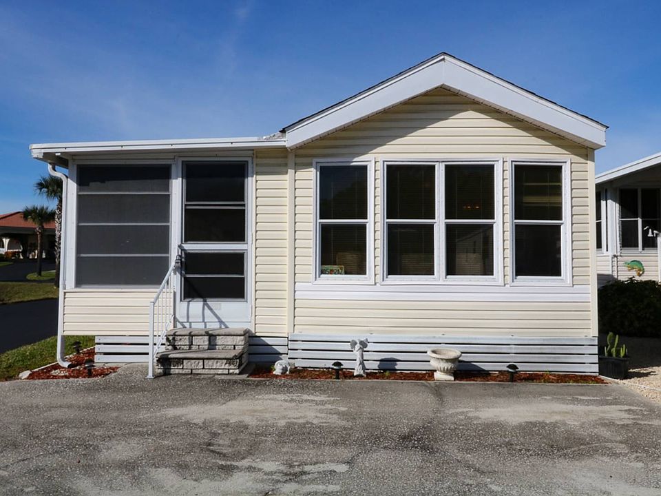 AN AMAZING WATER VIEW! Motivated seller, turn key property , fully furnished 1 bedroom, 1 1/2 bathroom , with a large sun room/ Florida room with water view .Corner lot with a perfect view of the pond and fountain. Close to clubhouse, pool, shuffleboard, all the community activities. Motorcycles and pets ok! Large dogs ok, no weight limit, NO aggressive breeds (buyer must check with management office). Electric water tank replaced approx. 2 years ago. Vaulted ceilings, and home is move in ready!. Ja Mar North a 55 + Community ! Lot rent varies 6 months at $536 month, the other 6 months $250.00 month. Sales price does not include tax(s), tag and title fees etc. ***All new residents must pass criminal and credit back ground checks and have a verified income of at least 2-3 times the lot rent. *** **Occupancy only after park approval, having signed the park lease agreement and payment for lot rent is received by the management. Then keys will be released to buyer(s). Title(s) and registration(s) will be delivered on or before 30 days from the above requirements, other contractual conditions may apply. ** "All listing information is deemed reliable but not guaranteed and should be independently verified through personal inspection by appropriate professionals. Can not guarantee or warrant the accuracy of this information or condition of this property. The buyer assumes full responsibility for obtaining all current rates of lot rent, fees, and pass-on costs. Additionally, the buyer is responsible for obtaining all rules, regulations, pet policies, etc., associated with the mobile home park community from the park manager. Not responsible for quoting of said fees or policies." This mobile home is being sold in AS-IS Condition Cash Only Absolutely NO Financing