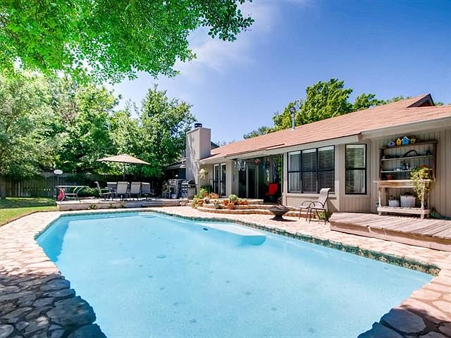 Come see this beautifully maintained one story home in the desired Oak Forest neighborhood. Backyard features in-ground pool, spa, covered patio, greenhouse, and plenty of yard space for entertaining! Spacious master suite enjoys direct access to the pool, huge bay window, updated private bath with double vanity, huge walk-in shower, and large walk-in closet. Other highlights include front bay windows, a spacious living room with vaulted ceiling. Close to all major employers and shopping in NW Austin!