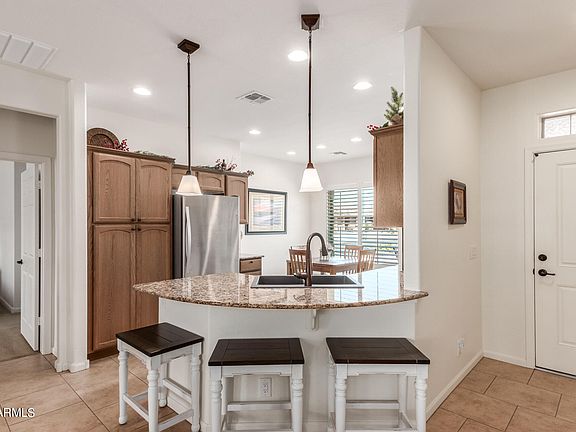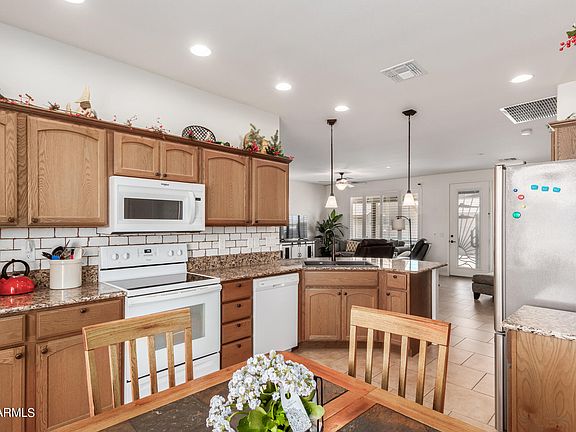 Move into this incredible property in the esteemed Sunland Springs Village! Situated in the corner lot of a peaceful cul-de-sac, this gem offers a desert front yard, stone accents, a courtyard, & a 2-car + extended golf-cart garage. The interior boasts an open layout enhanced with tall ceilings, plantation shutters, tile flooring, & open to views of the backyard. The kitchen is fully equipped with granite counters, recessed & pendant lighting, a subway tile backsplash, a breakfast bar, wood cabinetry w/crown molding, & a breakfast nook w/a bay window. Primary retreat has plush carpeting, a private bathroom w/dual sinks, a glass block shower, & a walk-in closet. The vast backyard, with pavers & a desert landscape, invites you to unwind under the covered patio! This gem won't disappoint!