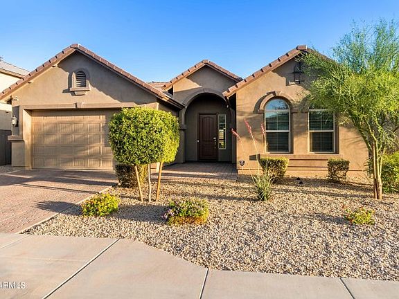 A warm welcome awaits at this modern, upgraded home featuring porcelain wood-look tile and upgraded carpets. The modern kitchen features white cabinets, sandstone tile backsplash, quartz counter tops and a raised breakfast bar. Enjoy the extended laundry room. The extended length garage features epoxy coating. Enjoy the lush backyard with grass, added pavers, covered patio, an RV gate, and N S exposure! Nearby attractions include the Phx-Mesa Gateway Airport, ASU Polytechnic campus, and the Arizona Speedway. The impressive, new 320 acre Bell Bank Park close-by also features events, concerts, sports tournaments, and fitness opportunities. And the nearby 202 freeway provides great access for an easy commute. Schedule your showing today, this one is going to go fast!