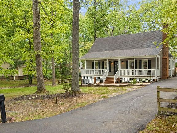 Welcome home to 11511 Leiden Ln. You'll fall in love with this 4 bed/2 bath charming Cape Cod-style home in the Frederick Farms neighborhood of Midlothian! As you approach this oversized cul-de-sac lot you are greeted by a welcoming front country-style porch that will be perfect for sipping morning coffee or enjoying evening sunsets. Step inside to this freshly painted home featuring a spacious living room with a wood burning fireplace and ceiling fan, an eat-in kitchen with SS appliances and a breakfast bar and a large family room with french doors that lead out to the back deck. Finishing off the 1st floor is a full bath and 2 nicely sized bedrooms with lighted ceiling fans and tons of natural light. Upstairs, you'll find two additional bedrooms with carpet (replaced in 2023) and lighted ceiling fans, extra closet storage, and a spacious bath. Enjoy the outdoors on your large deck that overlooks your private backyard oasis including a poured concrete patio and firepit and brand new detached storage shed. Located just minutes from all the shopping and amenities off Rte. 360/Hull Street, this home is a must see!