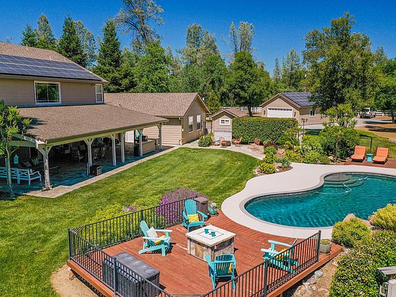What more could be said about this home, it has it all! Country living but close to town. Gated entrance to this private estate on over 5.5 acres. The home features 5 bed, 3.5 bathrooms & 3400+ square feet. Extensive renovations in 2014 including the beautiful kitchen. Owned solar (52 panels), pebbletec pool, 3-car attached garage, detached 24'x32' shop, pond, massive covered patio & so much more.