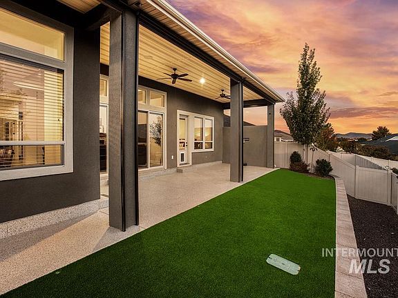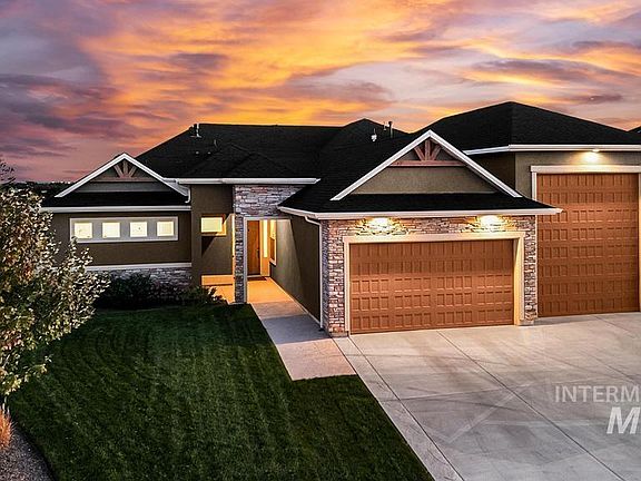 Welcome to this pristine 2,540 sq ft home in Star, Idaho, where country charm meets modern convenience with new restaurants and shopping just minutes away. The property’s standout feature is the impressive 45ft RV bay, complete with epoxy flooring, powder-coated cabinets, heating, insulation, and full attic access. The space is designed with 14ft ceilings, 8ft doors, and sleek granite countertops. Inside, the home exudes elegance with designer plumbing and lighting fixtures, rich wood trim and beams, spacious bedrooms, and abundant storage. The custom soft-close cabinetry includes a hidden pantry, ensuring seamless organization. Outside, the expansive back patio is perfect for entertaining, equipped with electronic shades to keep you cozy in the winter and shielded in the summer. The owner's suite features dual vanities, a freestanding tub, and a generous 13x15 walk-through closet with direct access to the utility room. Schedule your tour today!