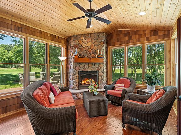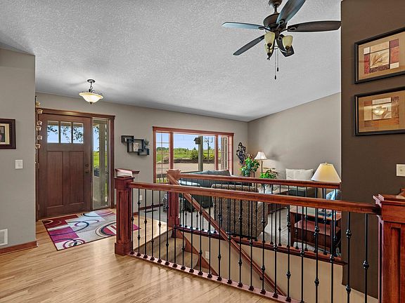 Welcome to your dream home, where peaceful country living meets modern comfort and city accessibility! Nestled on 10 beautiful acres —one-third wooded for privacy and two-thirds open land ideal for horses, hobby farming, or simply enjoying wide-open spaces—this property offers endless possibilities. Located within the highly sought-after South Washington School District (833), this fully remodeled walkout rambler is a true gem. The 2010 renovation brought high-end upgrades throughout, including elegant maple cabinetry and quality finishes in every room. Two sides of the 10 acres (North & East) are adjacent to City owned property, unlikely to ever be developed. Step inside to discover a thoughtfully designed layout offering true main-level living. The main floor features a spacious primary bedroom with a luxurious ensuite, a convenient laundry room, a dedicated office, and an open-concept kitchen and dining area—all on one level for ultimate ease and comfort. With 6 bedrooms and 4.5 bathrooms, there’s plenty of space for everyone; three of the bedrooms boast walk-in closets for exceptional storage. Gather in any of the three inviting living areas, each warmed by its own cozy fireplace—perfect for both lively entertaining and quiet evenings at home. The expansive lower-level family room is ideal for relaxing or hosting guests, while the beautiful four-season porch invites you to enjoy the changing scenery year- round. Step out onto the large deck off the kitchen, perfect for outdoor dining, summer barbecues, or simply soaking in the peaceful surroundings. Storage is abundant throughout the home, including a dedicated shed for gardening tools. For those who need even more space for hobbies or storage, the property includes a massive 60x44 pole barn, and an oversized 3-car heated garage—ideal for vehicles, equipment, or workshop needs. Enjoy the quiet, private setting surrounded by nature, while still being just minutes from shopping, schools, and major highways. This is rural living with city convenience at its very best—don’t miss your chance to call this exceptional property your home!