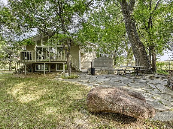 Sitting way off the road, & backing to open space you will enjoy the peaceful setting & rural feeling of the neighborhood from this lovely home. Driveway is lined with Fruit Trees - lot is just over an acre & has about 50 trees in all. 1 Share of the Leyner-Cottonwood ditch that abuts property will be transferred to buyer at closing. High ceilings, nice light & great views from most windows in home. New paint, carpet, & garage door opener in 2020, new Tank less Hot water Heater , Furnace/A/C, roof & gutters in 2019. 2 livestock (horses, llamas etc.) are allowed in addition to chickens. The garage is oversized with a shop, storage & 100 amp service. Relax on the deck & watch the abundant wildlife or venture out to nearby trails, bike path & pond. Ideal location - central to Lafayette, Erie, Boulder Longmont. Please view 3D tour before setting up a showing. Only pre-qualified serious Buyers please. Also included Tractor Tire, Swing Sets, wheelbarrow & Trampoline in Yard.
