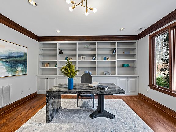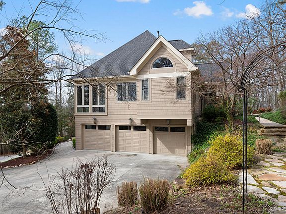 Amazing Governor's Club opportunity nestled atop Edwards Mountain. This unique, transitional home boasts a whimsical open-plan design, vaulted ceilings, and breathtaking nature views. With over 1 acre of wooded privacy, this luxury home offers a private oasis. The lower level features a private kitchenette, offering multigenerational living possibilities, the main floor boasts built-ins, hardwood floors, wall to wall windows flood the family room with natural light, large kitchen with breakfast nook and separate dining area, stainless steel appliances, sunroom, office, owner suite, double vanities, tile shower, upper floor includes 2 large bedrooms. Enjoy outdoor entertaining with a heated & covered terrace, outdoor fireplace, and hot tub. A custom elevator provides access to all three levels. Don't miss out on this contemporary retreat with endless amenities!