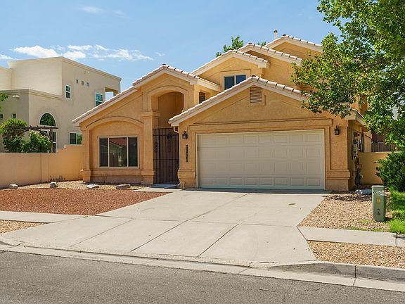 Incredibly spacious four bedroom house with the primary bedroom downstairs and three bedrooms upstairs. Two living areas, formal dining room, dedicated laundry room &kitchen nook provide space for a home office, & multi-generational living. The kitchen features Samsung Chef Collection appliances, a pantry, tons of counter space all open to the spacious living room with a gas fireplace. Some of the other upgrades in the house include all new argon gas insulated windows in 2021, Solar panels & electrical upgrade. The backyard features a fire pit, pergola, has a hot tub hook up, pet turf, privacy & more. Plus there is a grill that stays! Close to the base, park, Manzano Mesa Multi-generational center, the foothills, Costco, Sprouts, the movies & more, this location is a must see!